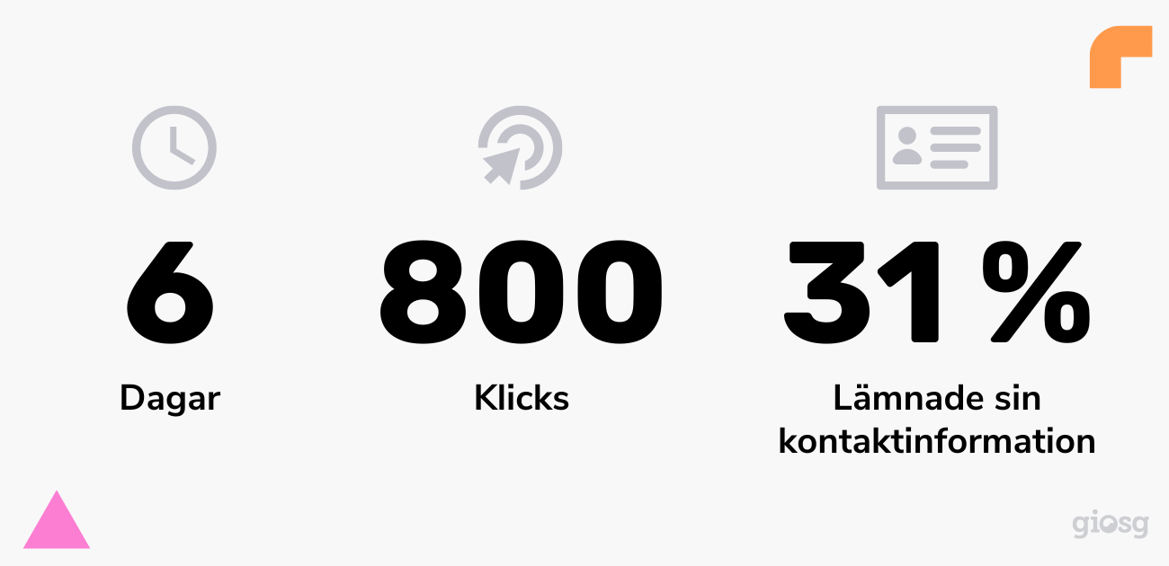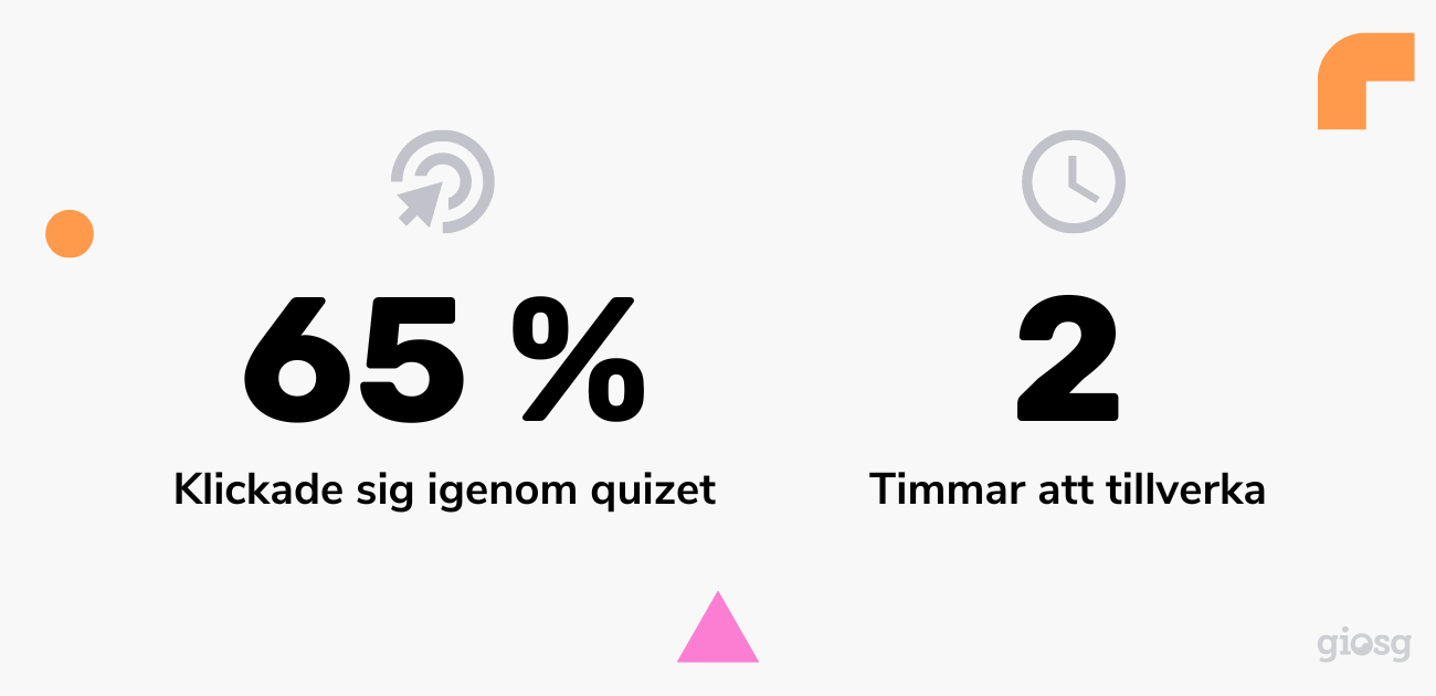 Tillsammans med Giosg skapades två mätbara KPI:er; högre konvertering och fler email-prenumerationer. Därefter började man titta på olika lösningar och kom snabbt till insikt med att interaktivt innehåll skapat i verktyget Interaction builder var svaret.